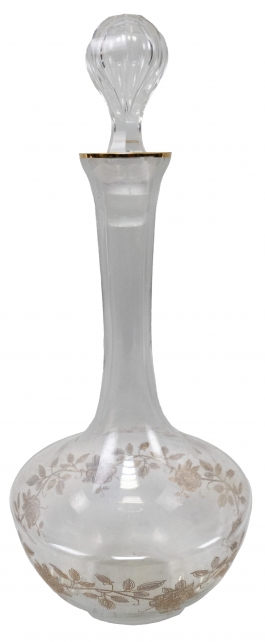 05.15 Flacon cu dop, cristal gravat, parțial aurit, H 40cm (total), jum.sec.XX