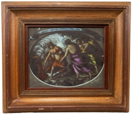 05.17 "Scenă mitologică" pictură pe sticlă, semnată A.Buzet, înrămată, 21x26cm, Italia, cca. 1900