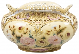 05.03 Platou circular cu capac, porțelan pictat, semnat Shalliy Moustino, dia.25,5cm