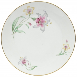 05.02 Platou rotund, decorat cu iriși și aur, porțelan marcat Rosenthal, dia.33cm, perioada interbelică