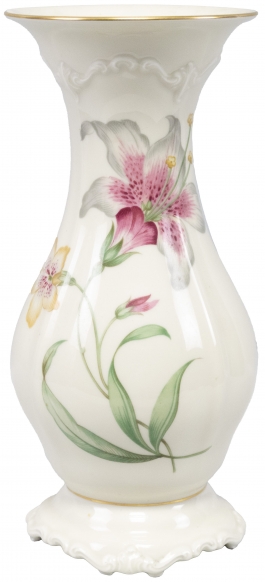 05.07 Vas pentru flori, porțelan decorat cu flori și aur, marcat Rosenthal, H 24.5cm, perioada interbelică