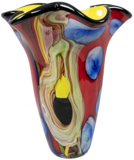 05.06 Vas ornamental, bordură gofrată, decor abstract longitudinal, sticlă colorată în masă cu pulberi, H 32 cm, Murano, a II-a jum.sec.XX