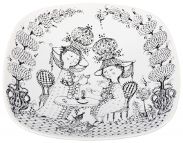 05.19 Bol pentru prăjituri, porțelan pictat cu email, decorat cu personaje, marcat Rosenthal, semnat Bjorn, dia. 20cm, a II-a jum.sec.XX, ambalaj original