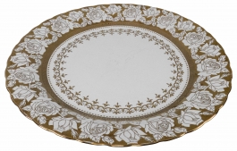 05.02 Platou rotund, porțelan decorat cu trandafiri, pictat cu aur, marcat, dia.40,5cm, Orientul Mijlociu, jum.sec.XX