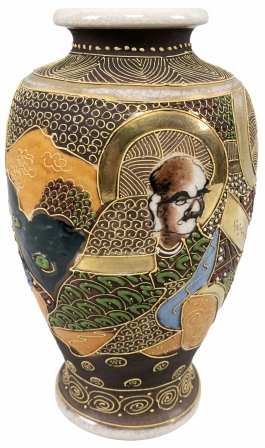 05.03 Vas ornamental, ceramică pictată cu personaje, tehnică Moriage, marcat Satsuma, H 18.5cm, Japonia, jum.sec.XX