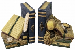 05.04 Pereche de suporturi pentru cărți, decorate cu obiecte de studiu, ceramică pictată, H 12cm, înc.sec.XX
