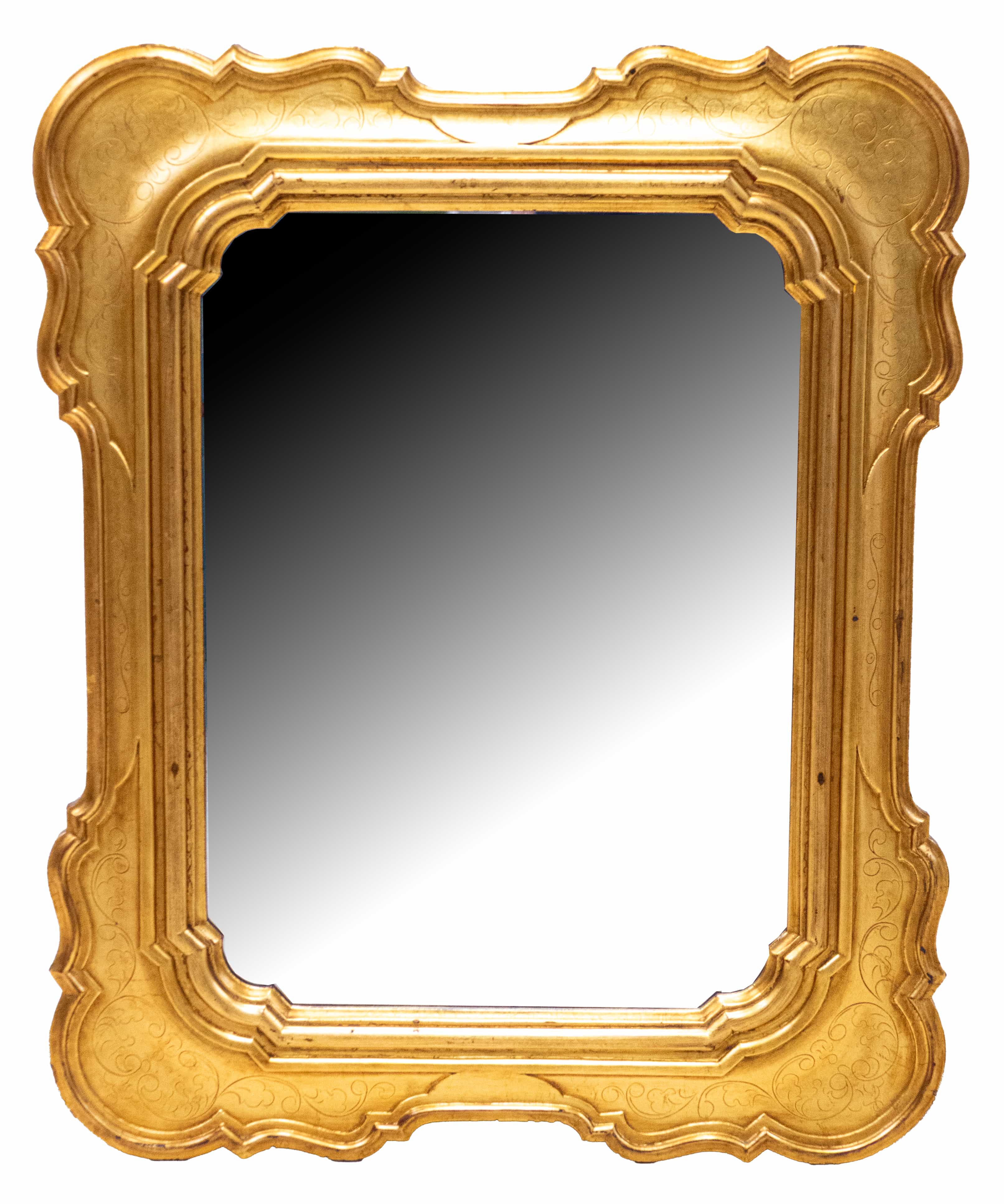 cristal bizotat, ramă lemn aurit, 73x88cm, perioada interbelică