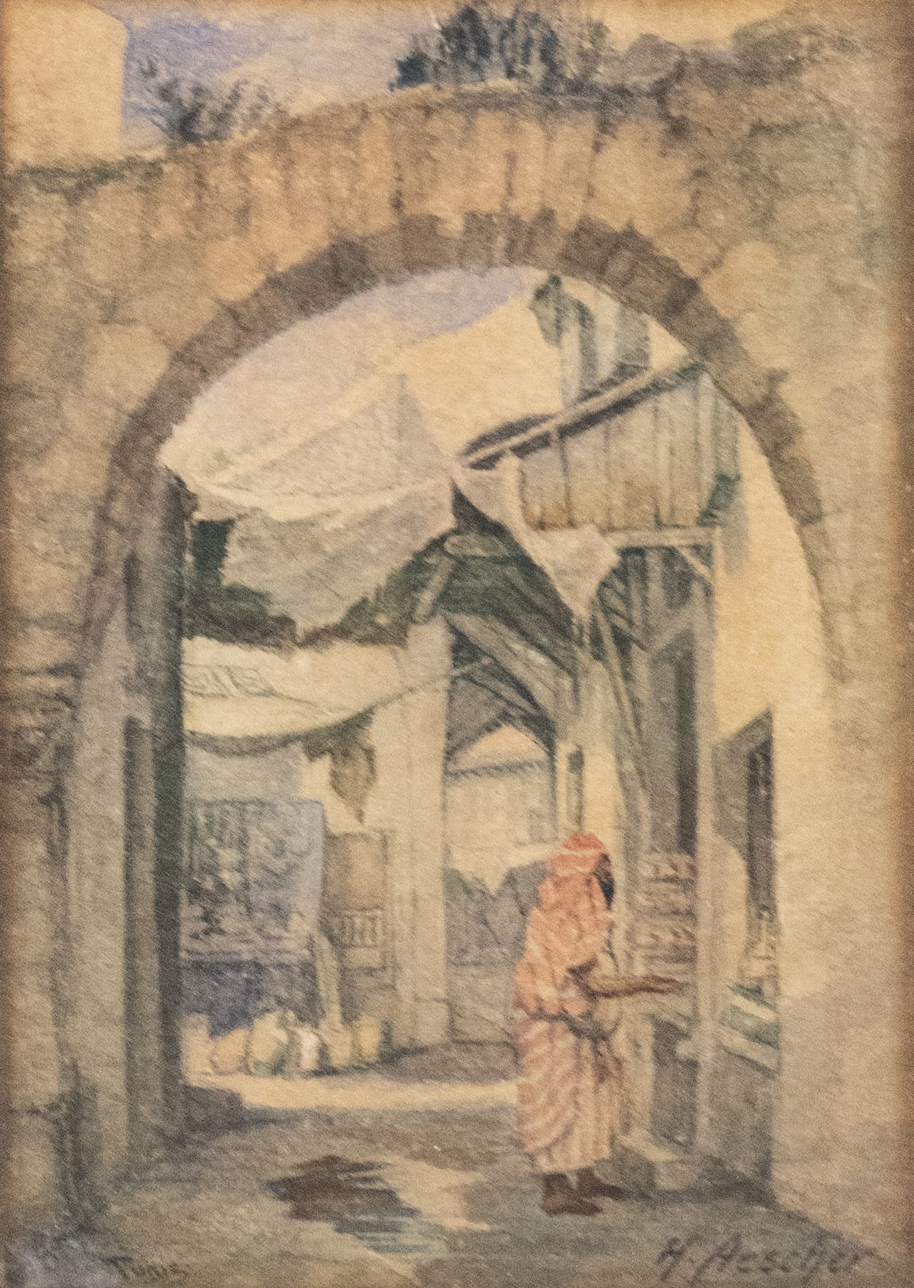 07.08 Hans Aescher (1873-1937) - "Tunis", acuarelă, 25x17.5cm, semnat dreapta jos cu negru, localizat Tunis
