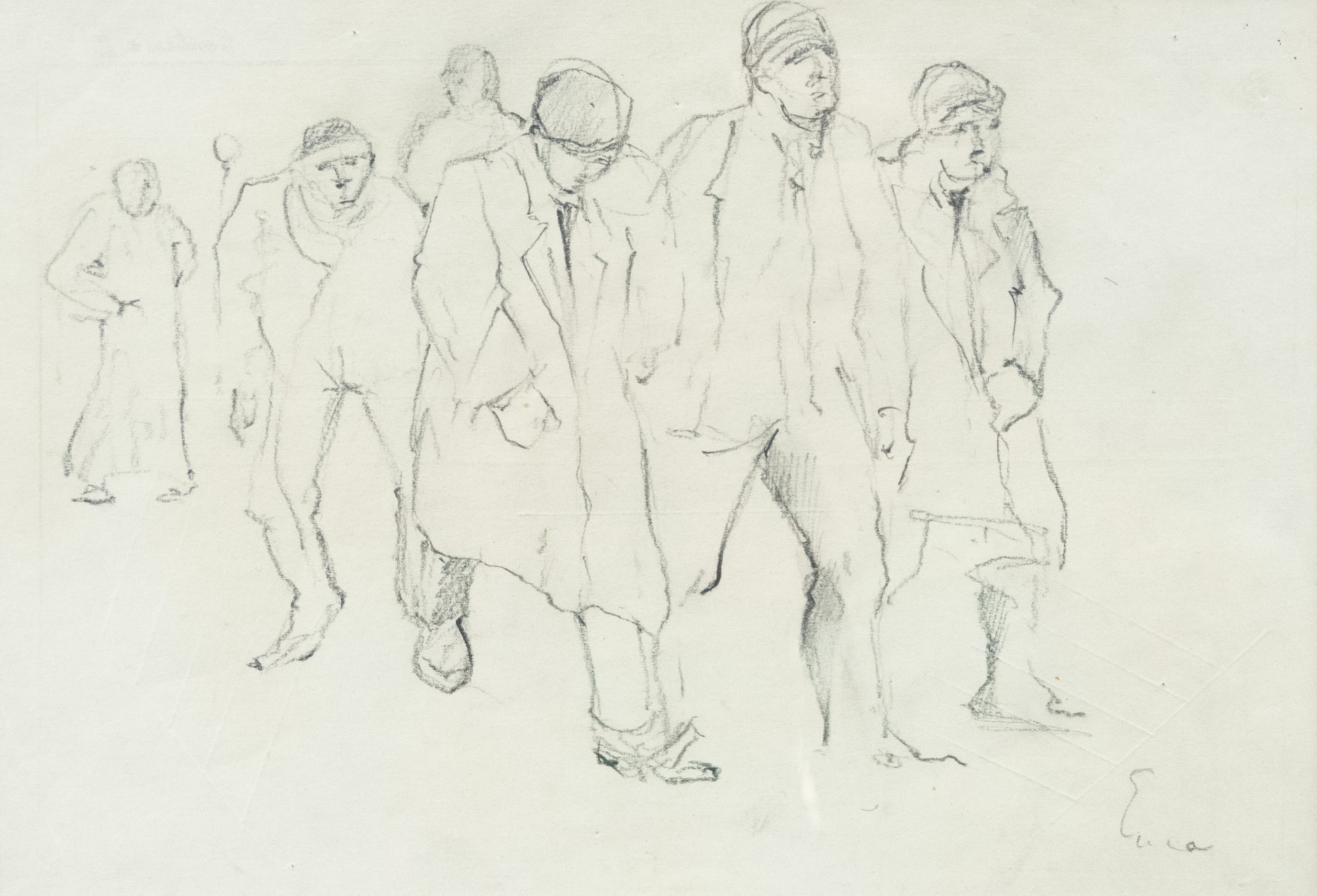 07.12 Nicu Enea (1897-1960) - "Grup de muncitori", creion, 19.5x28.5cm, semnat dreapta jos cu creionul