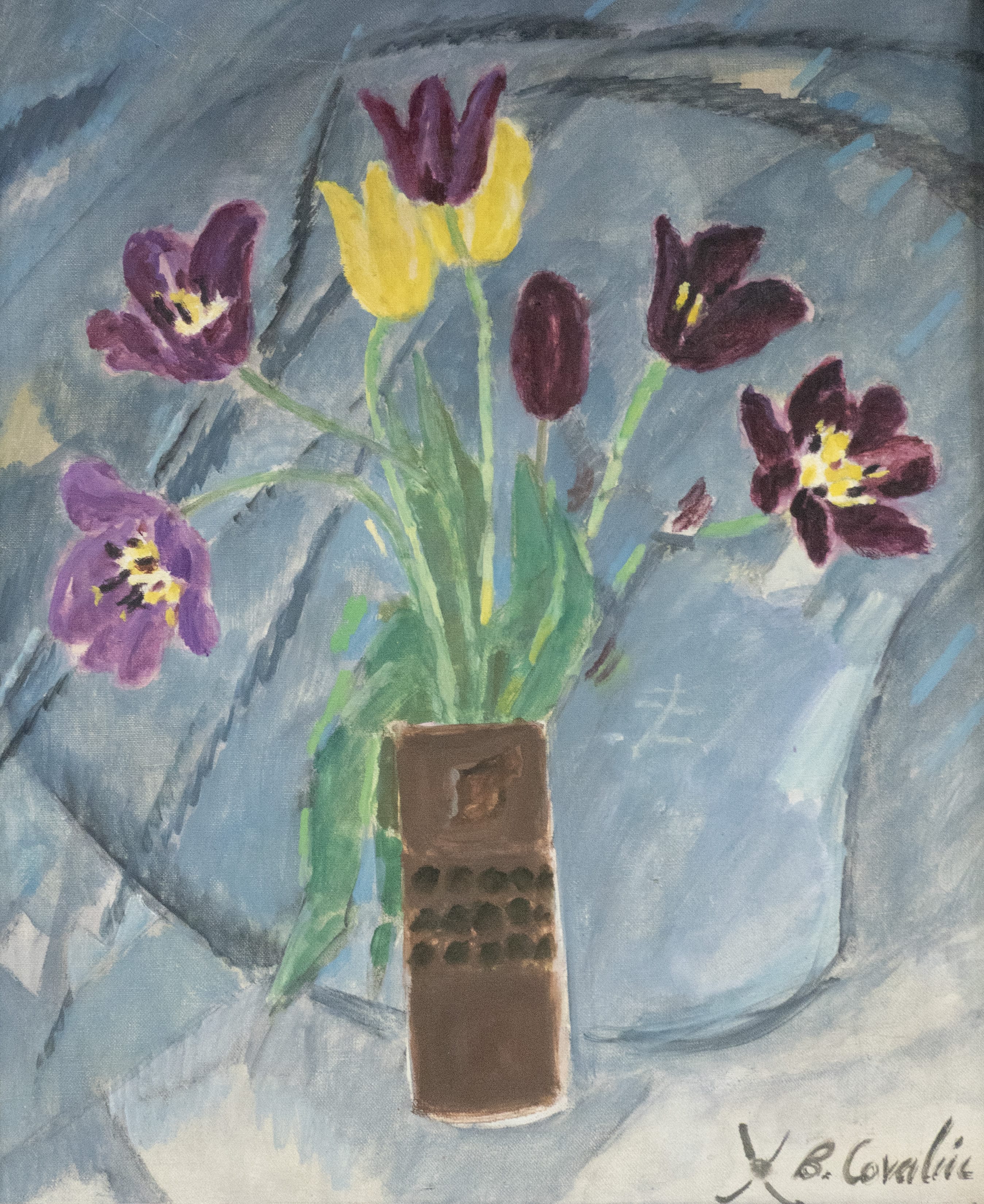 07.22 Brăduț Covaliu (1924-1991) - "Lalele", ulei pe pânză, 73x61cm, semnat dreapta jos cu gri, datat (1983)