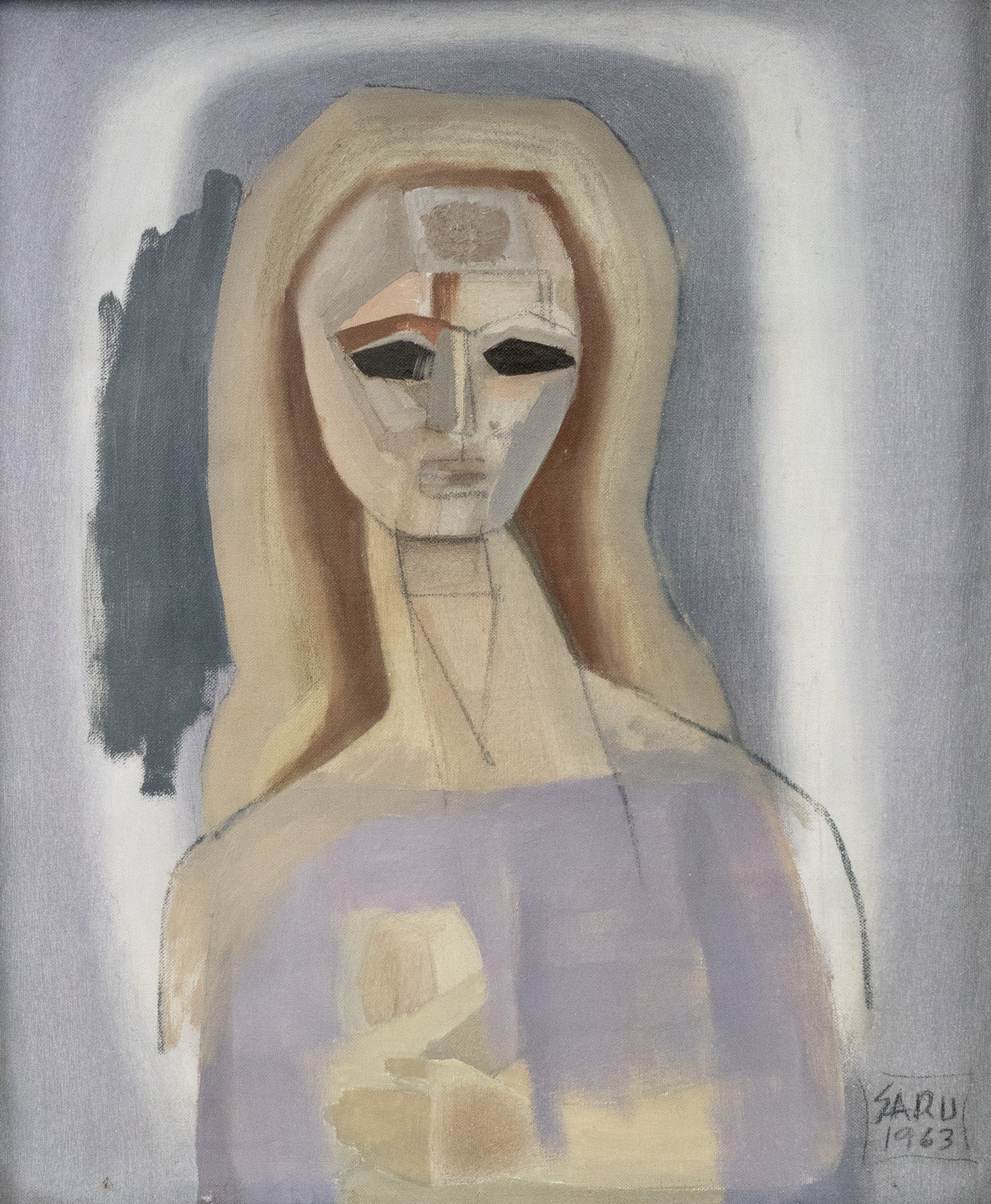 07.23 Gheorghe Șaru (1920-2003) - "Portret de tânără", ulei pe pânză, 65.5x54cm, semnat dreapta jos cu negru, datat 1963