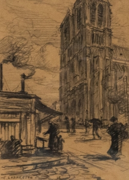 07.04 Emilian Lăzărescu (1878-1934) - "Paris", cărbune, 20x14.5cm, semnat stânga jos cu negru