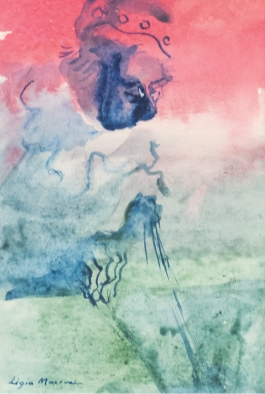 07.07 Ligia Macovei (1916-1998) - "Păpușarul", acuarelă, 24.5x16.5cm, semnat stânga jos cu albastru