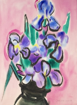 07.10 Iulia Hălăucescu (1924-2007) - "Stânjenei", acuarelă, 61x45cm, semnat dreapta jos cu creionul, datat (1)959