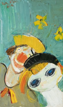 07.17 Tia Peltz (1923-1999) - "La circ", ulei pe carton, 57x35cm, semnat stânga sus cu roșu, datat (1)965