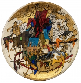 07.19 Mihai Gheorghe (1937-2018) - "Drum măcinat", ulei pe lemn, dia.44cm, nesemnat