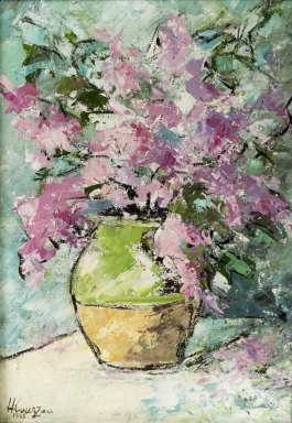 07.20 Horia Cucerzan (1938-2021) - "Flori roz", ulei pe pânză, 36x26cm, semnat stânga jos cu brun, datat 1997
