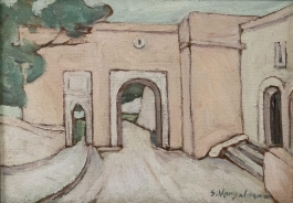 07.27 Spiru Vergulescu (1936-2007) - "Porți - Budapesta", ulei pe pânză, 25x35cm, semnat dreapta jos cu gri, [1977], a participat la expoziția personală Buc.1978, cat.49